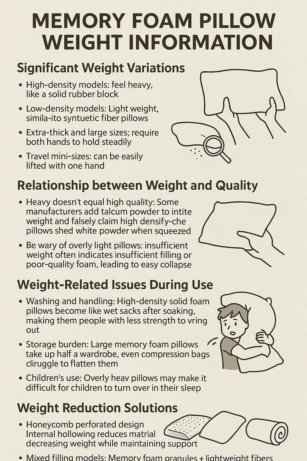 Jastuci od memorijske pjene imaju nedosljedne težine, uglavnom pod utjecajem gustoće i veličine: